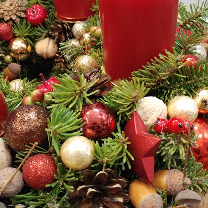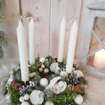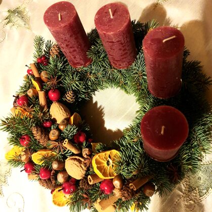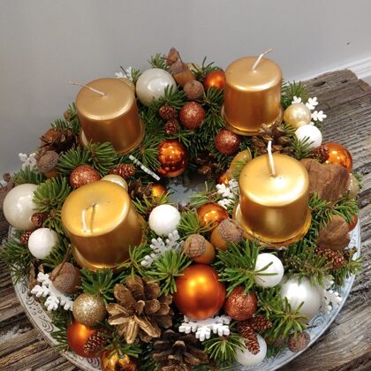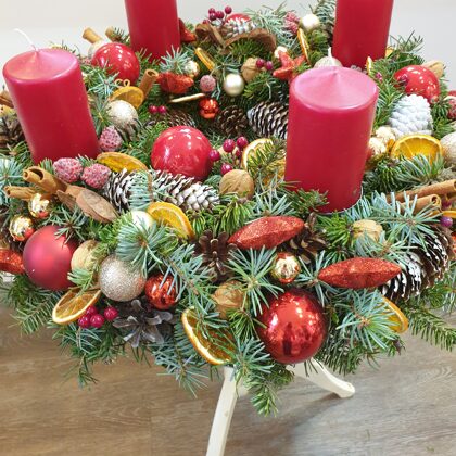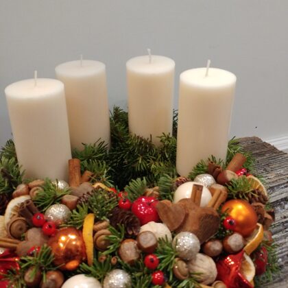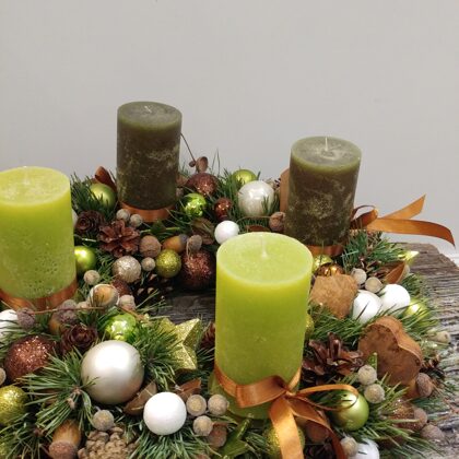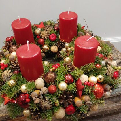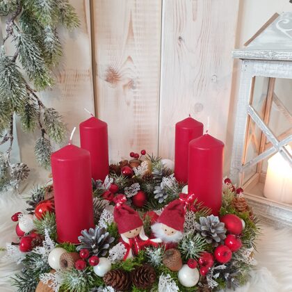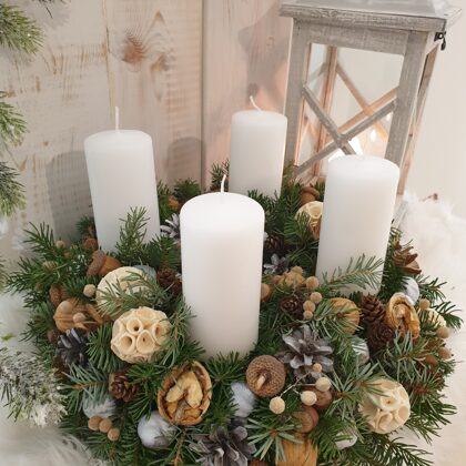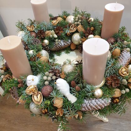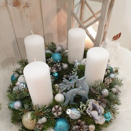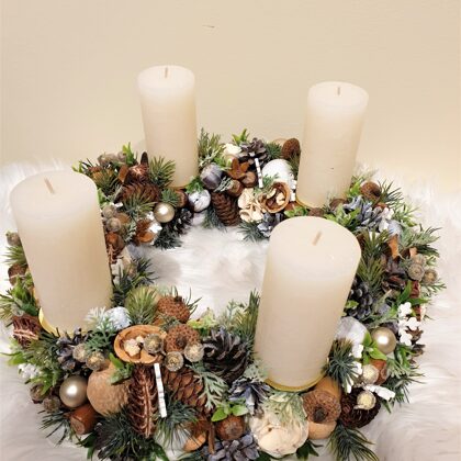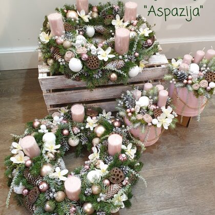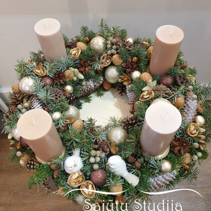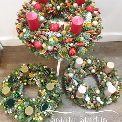 Adventes vainagus un durvju vainagus ir iespējams pasūtīt vēlamajos toņos. Tos var izgatavot gan no dzīvām, gan mākslīgām skujiņām.
